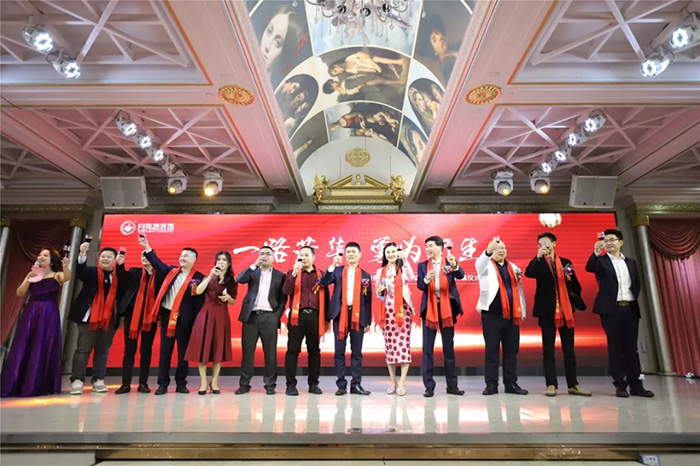 在晚宴开始前,大家在两位主持人的带领下,共同喊起“月亮湾,一路芳华,勇为新生”的晚会口号,寓意着在美好的景象和灿烂的芳华里,我们更加要努力开拓新世界!